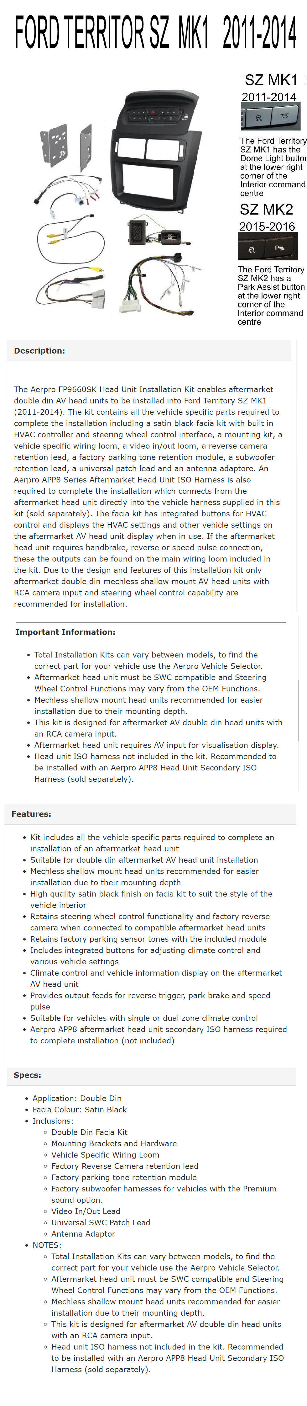 * Unless specified all units are plug and play for power/speakers etc
